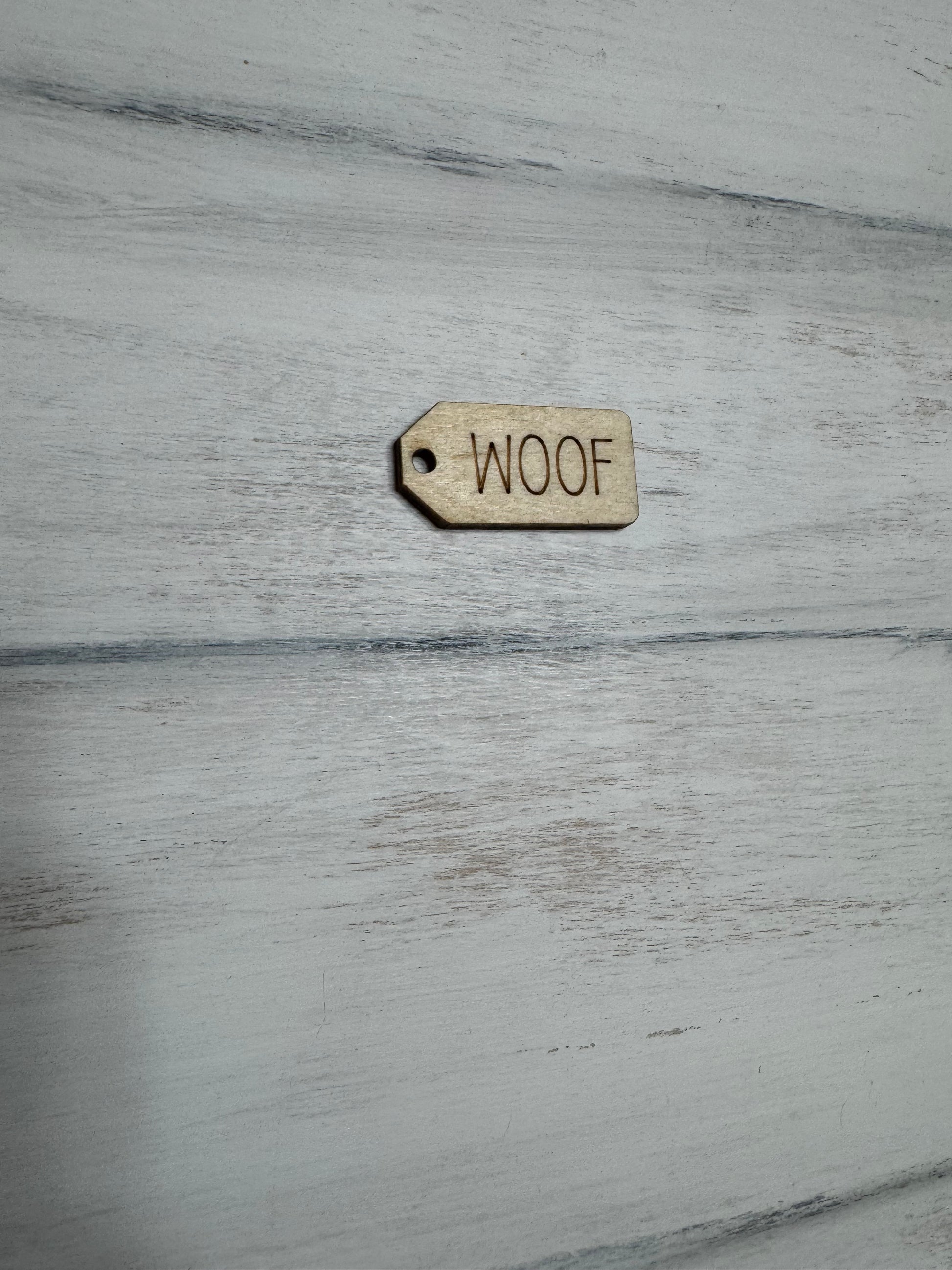 WOOF wooden tag